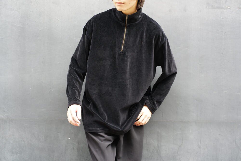 The simple form and deep black give a modern impression, and the soft velor fabric has a soft and relaxed feel and a beautiful drape.