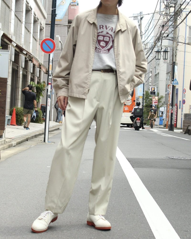 A light jacket for golf and other outdoor activities, featuring the sportiness of raglan sleeves and the lightness of wearing with a single layer. This is an individual from the 1970s, made by London Fog, also known as the American Burberry. The elegant light beige color gives a smooth impression. Although it is an item with many tight sizes, it has a moderately roomy silhouette while making it look neat. Quality: Cotton/Polyester Color: Light Beige SIZE: 42(XL) [Size] Yuki (raglan): 85cm Width: 62cm Length: 67cm [Model size] Height: 175cm Shoulder width: 43cm B (chest): 85cm W (waist) : 71cm Since it is an old item, it rarely deteriorates over time. Although we try to make the product photos as close to the actual color as possible, the color of the actual product may differ depending on your monitor settings, room lighting, etc. Please check the photos and understand the vintage characteristics before purchasing. ※Please refer to here for the measuring method.
