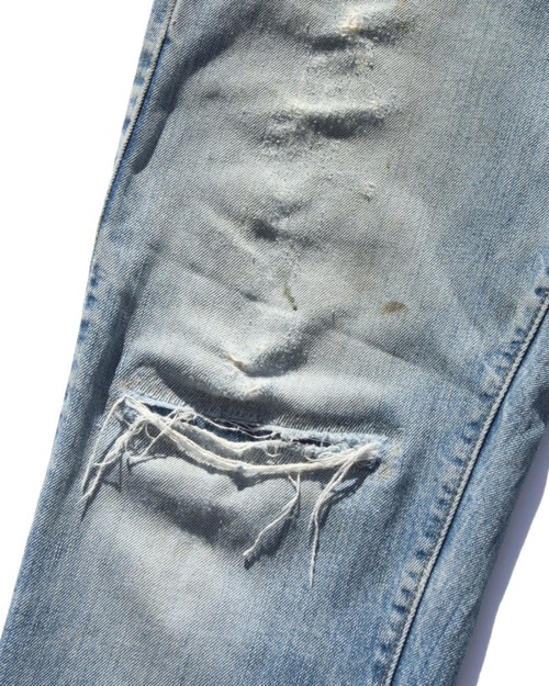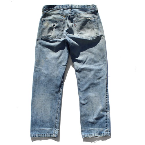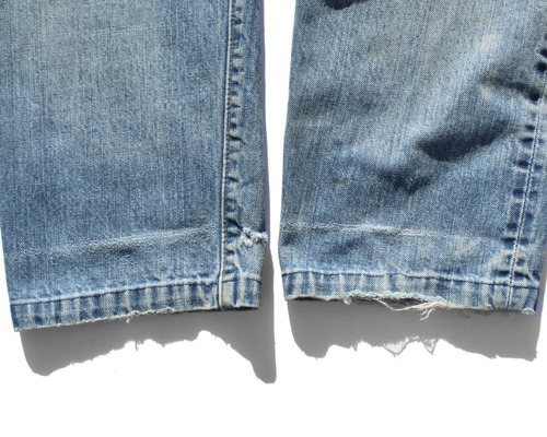 Levis part number 505-0217, the fabric that fell vertically and the way the damage entered was good, so we repaired it with a lining fabric at our store. Its hard to see in the photo, but its probably the 66 model of the 1977 501, with a single stitch on the back of the pocket, and the fabric has a nice vertical drop, so it may be an individual in the transitional period from the previous model. The combination of realistic aging and the 505 silhouette makes it a very mannish individual. The 505 has a loose silhouette around the waist and a well-balanced length (repaired at the time) to create a distressed denim that can be worn by adults. Since it is old, there is rare deterioration over time. Please be aware of this after checking the photos.