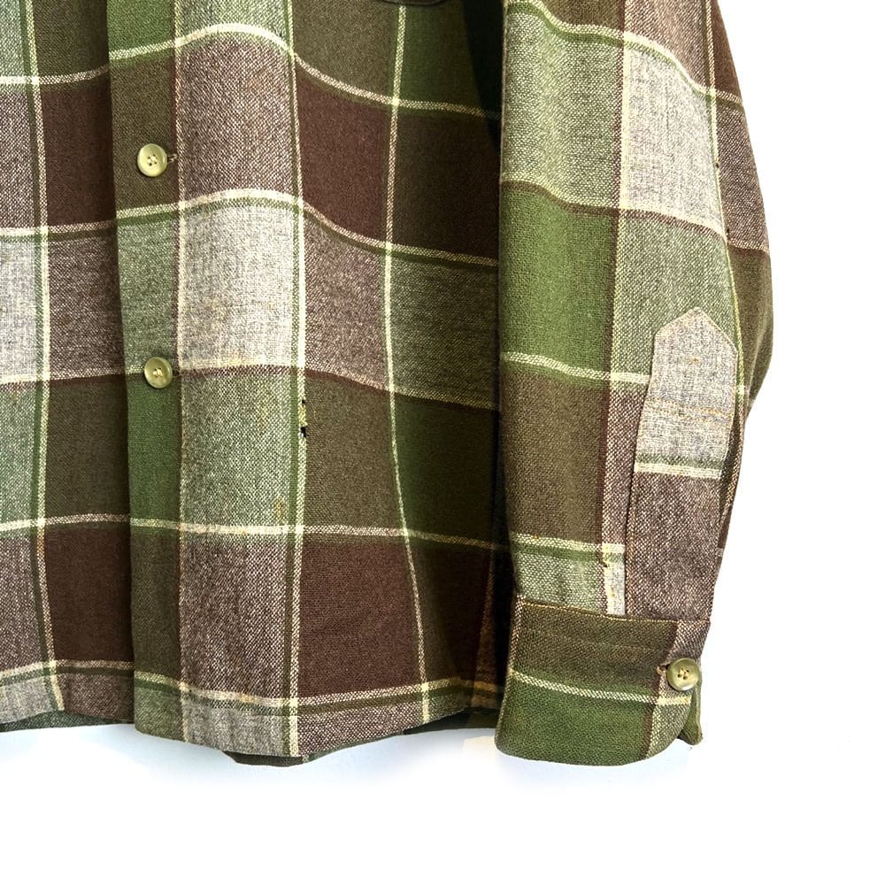1950s Pendleton wool shirt Olive, brown, gray plaid pattern with astringent taste and masculinity. There are a few small hole damages, but there is no problem with wearing. good pendleton vintage shirts