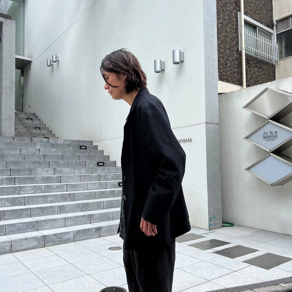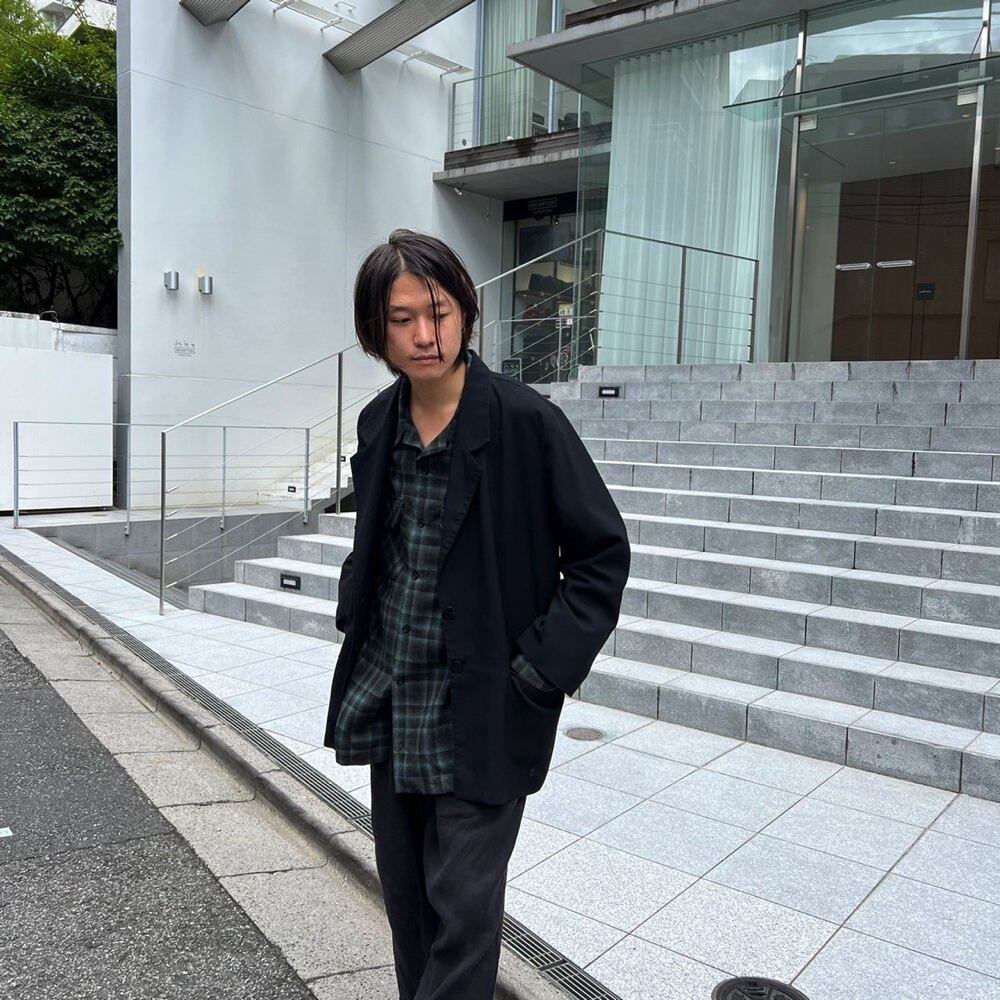 Light jacket from the 80s Made of a single piece of light rayon and polyester fabric, it has a moderately loose and relaxed oversilhouette that can be worn like a shirt.A black iron plate jacket that is easy to match with your outfit.