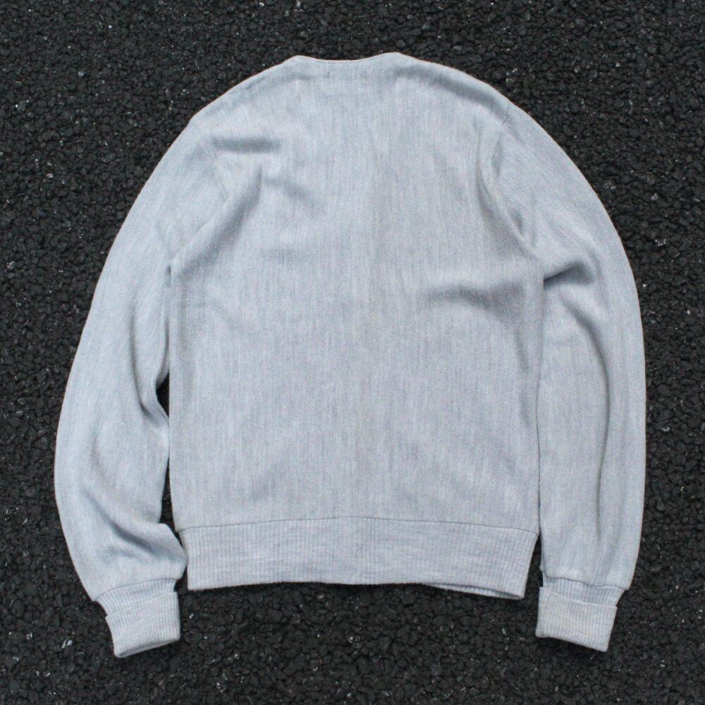 Around the 1980s, it is a knitted cardigan for golf. It has been popular since the latter half of the 1950s, and features a characteristic braided shape, a rounded silhouette, and voluminous sleeves that reflect the amount of exercise. This is Montgomery Wards private brand featuring a rabbit logo, and since the 1970s, all manufacturers have used branding with animal embroidery on the chest. The unique silver color gives it an elegant look, and the slightly elongated silhouette gives it a clean silhouette. There is a thin stain on the back. Quality : Acrylic Color : Silver SIZE : M [Size] Shoulder Width: 48cm Width: 57cm Sleeve Length: 82cm Length: 74cm [Model Size] Height: 175cm Shoulder Width: 43cm B (Chest): 85cm W (Waist): 71cm Old and rare There is aged deterioration etc. Although we try to make the product photos as close to the actual color as possible, the color of the actual product may differ depending on your monitor settings, room lighting, etc. Please check the photos and understand the vintage characteristics before purchasing. ※Please refer to here for the measuring method.