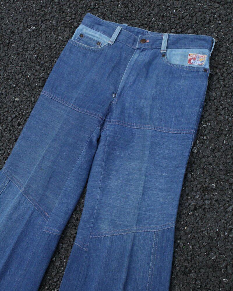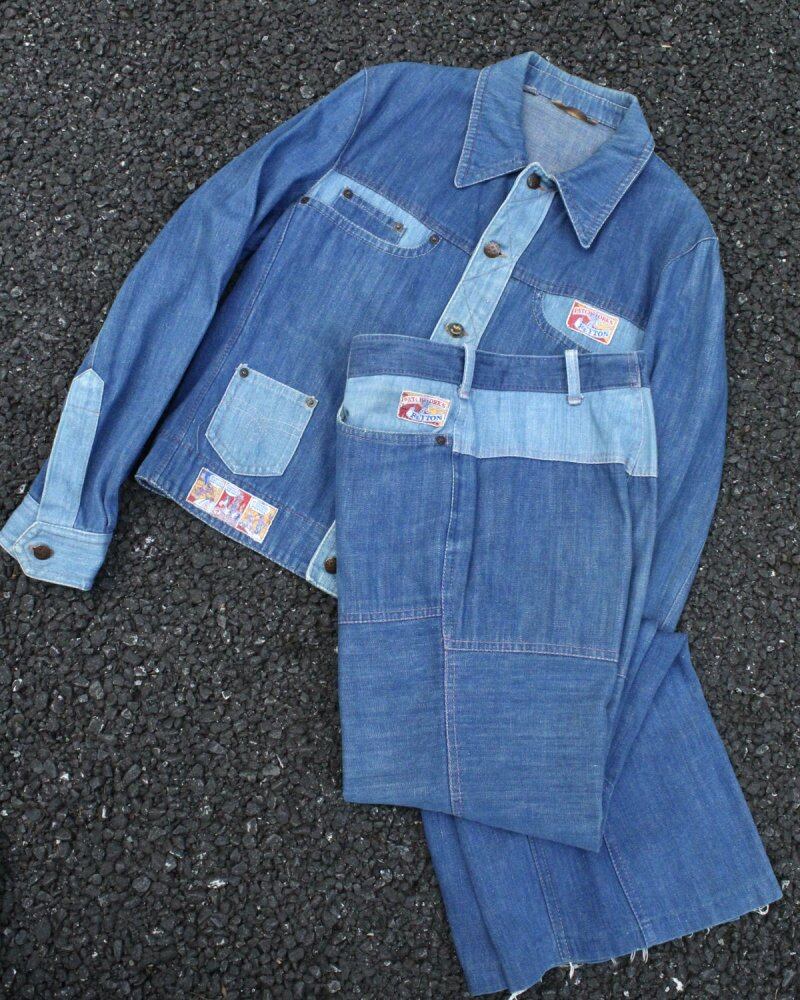 1970s denim setup. The patchwork design that seems to be from this era and the light indigo color that makes you feel that it is made in Spain is a unique look. A slim track jacket and bell-bottom trouser suit make an impact. Quality : Cotton Color : Indigo SIZE : 42 [Jacket] Shoulder width: 45cm Width: 54cm Sleeve length: 66cm Length: 66cm [Jacket] W: 74cm (29 inches) H: 98cm Rise: 21cm Thickness: 29cm Inseam: 77cm Hem width: 31cm [Model size] Height: 175cm Shoulder width: 43cm B (chest circumference): 85cm W (waist): 71cm Since it is an old item, it rarely deteriorates over time. Although we try to make the product photos as close to the actual color as possible, the color of the actual product may differ depending on your monitor settings, room lighting, etc. Please check the photos and understand the vintage characteristics before purchasing. ※Please refer to here for the measuring method.