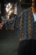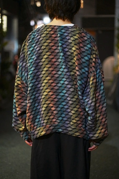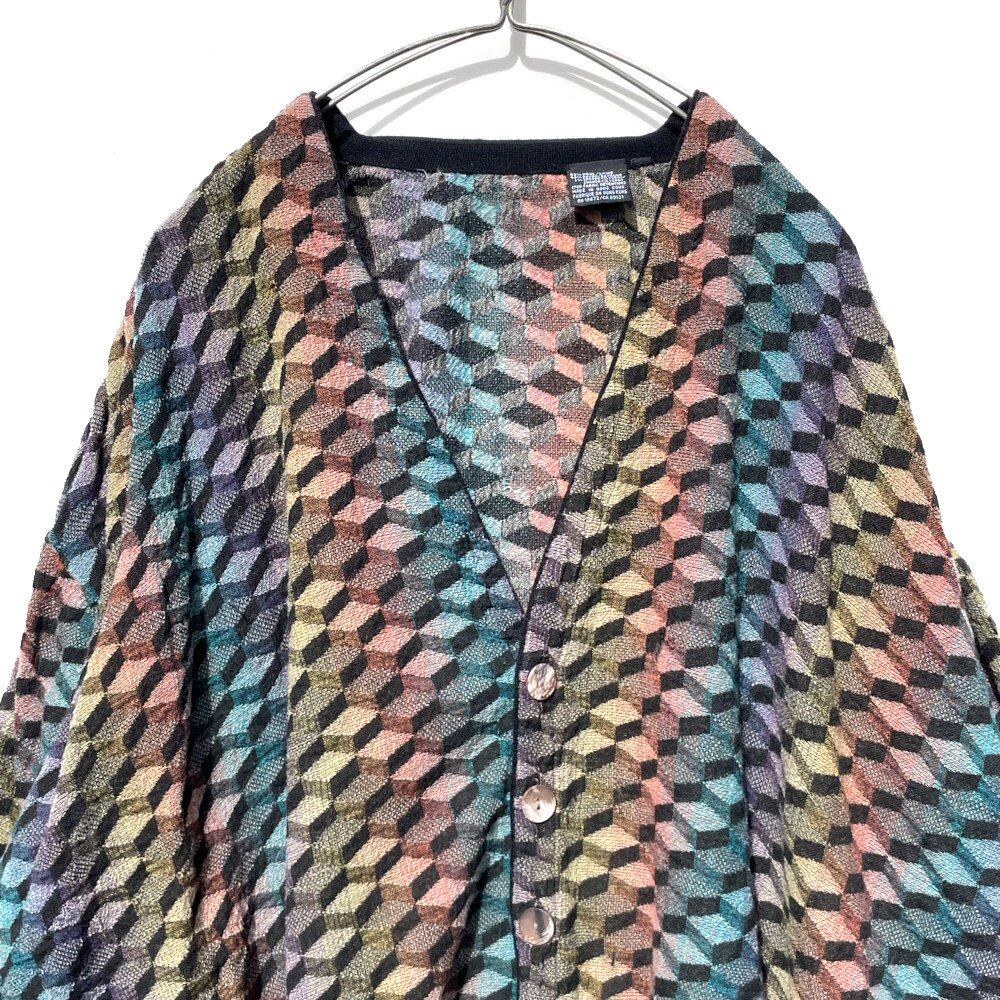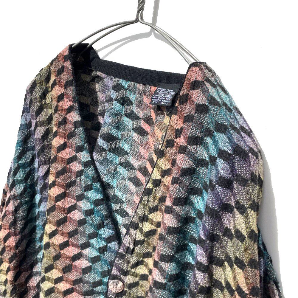 A dolman sleeve cardigan with artistic coloring from the 1990s.