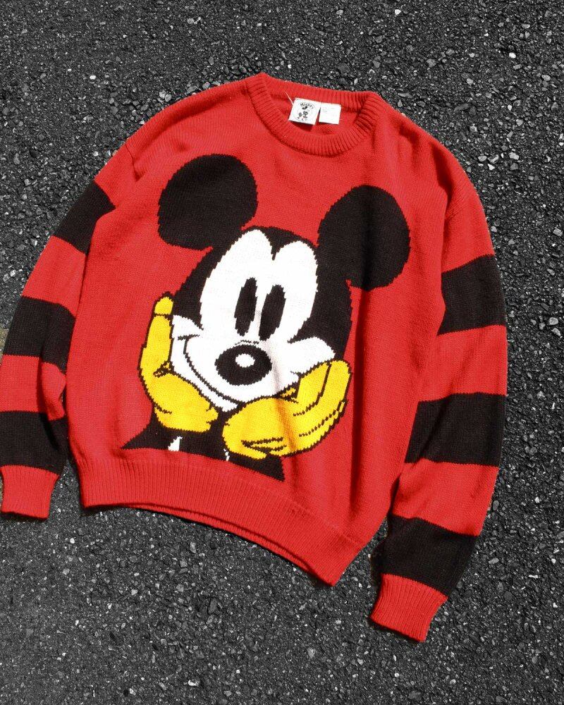 Apparel line of Disney developed in this generation. A design with black stripes on a red body reminiscent of vintage lettered knits and sports jerseys. It has a loose silhouette and a relaxed size. There is a feeling of pilling a little, but there is no damage. Since it is an old item, it rarely deteriorates over time. Please check the photos and understand the vintage characteristics before purchasing.