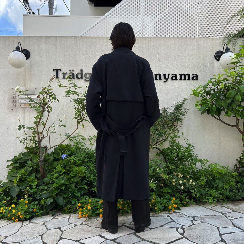 Trench coat from the 90s A trench coat made of peach skin cloth with a smooth brushed feel A beautiful shoulder line with raglan sleeves and a pretty silhouette among vintage trench coats Unique to peach skin cloth One piece with matte textured black color removable lining