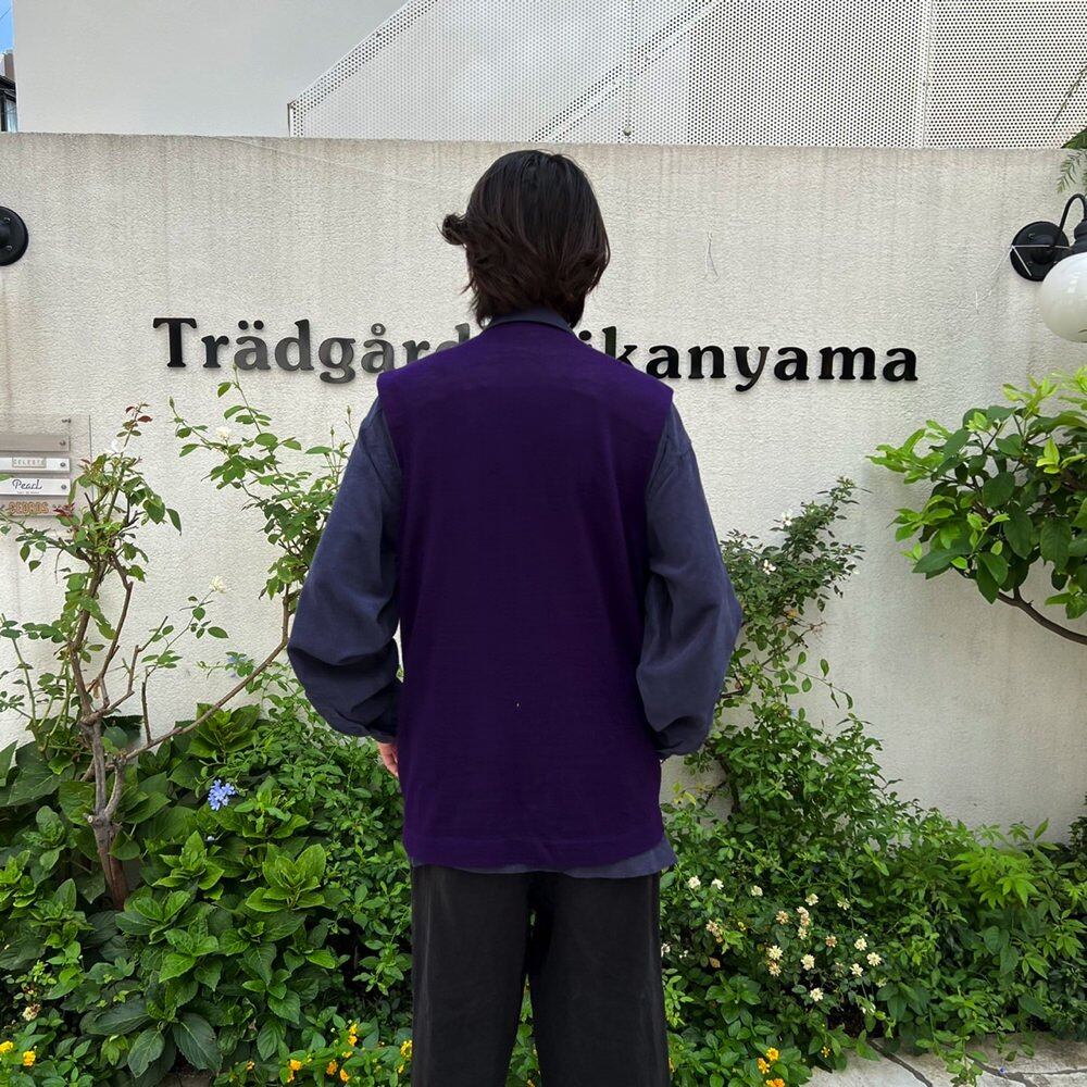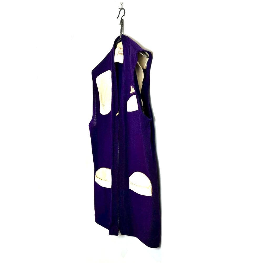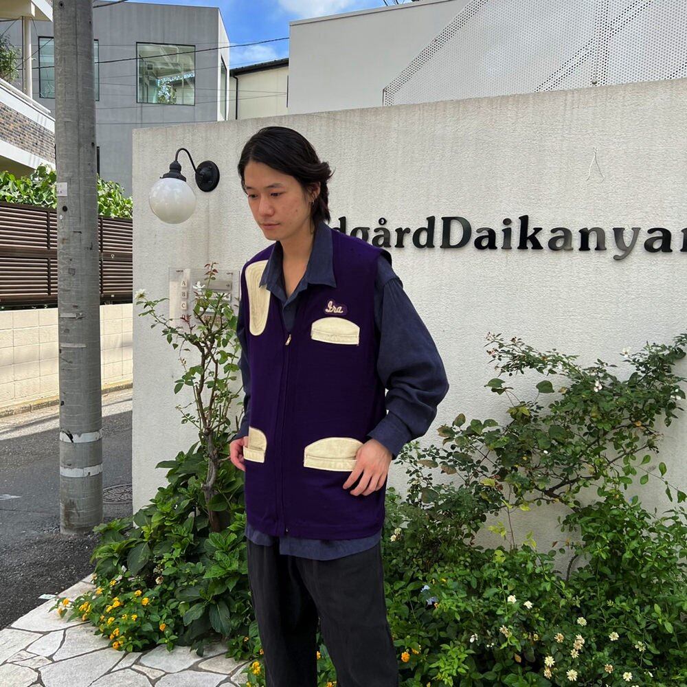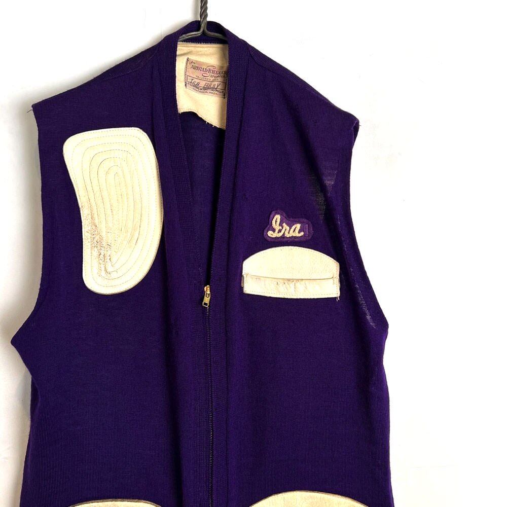 50s shooting vest Knit × leather vintage vest with interesting matching of different materials Purple and ivory coloring is also a cool piece.