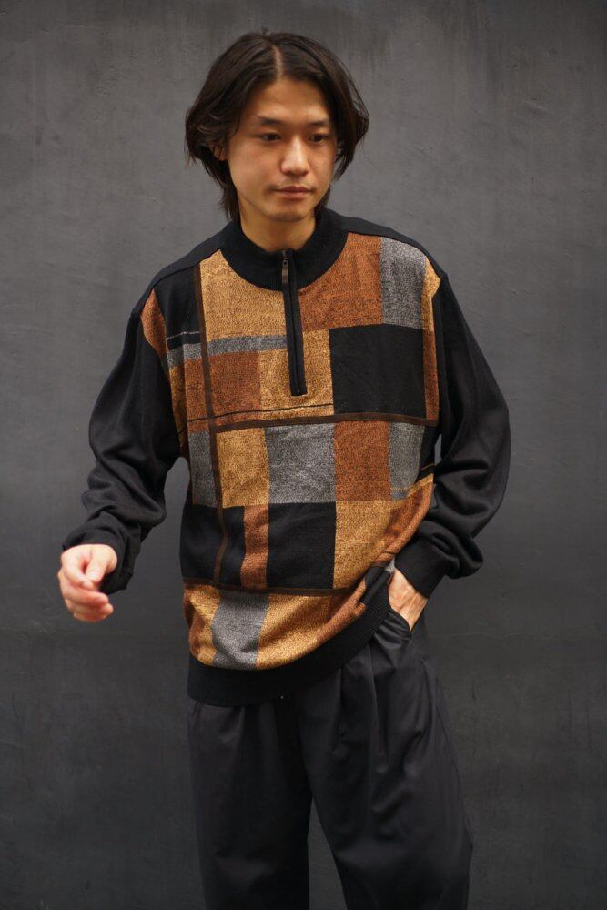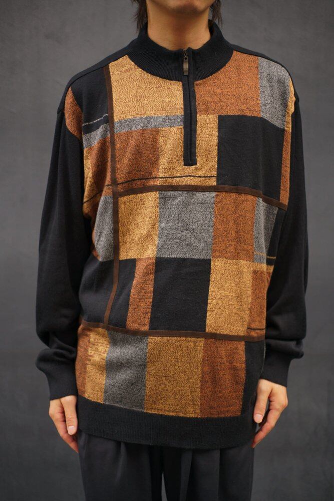 Around the 1990s, this is a half-zip mock neck knit made by TRUST.
