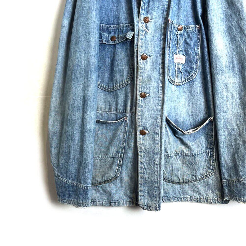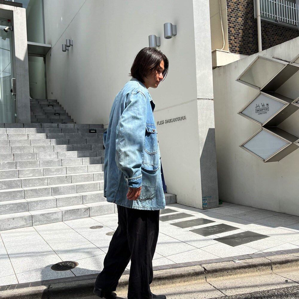 Coverall jacket from the 60s The ice blue indigo color has faded beautifully over time, and the soft denim has a nice texture.