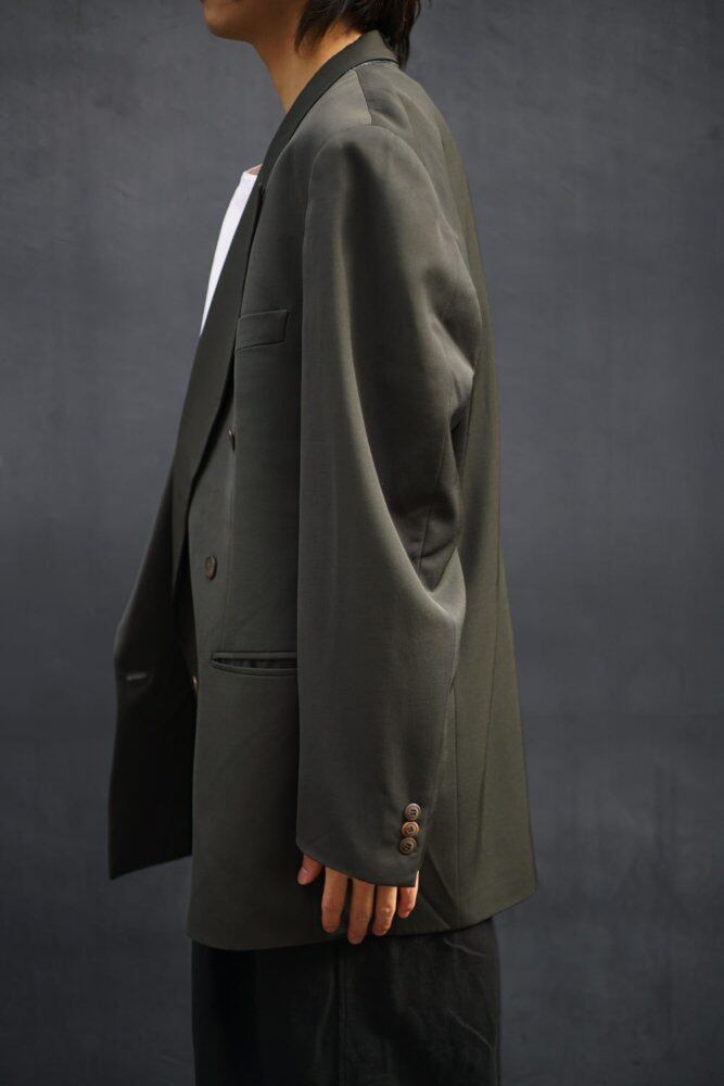 The double-breasted voluminous feel is elegant, and the low gorge line makes it look more casual and light.