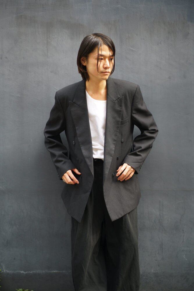 The double-breasted voluminous feel is elegant, and the low gorge line makes it look more casual and light.