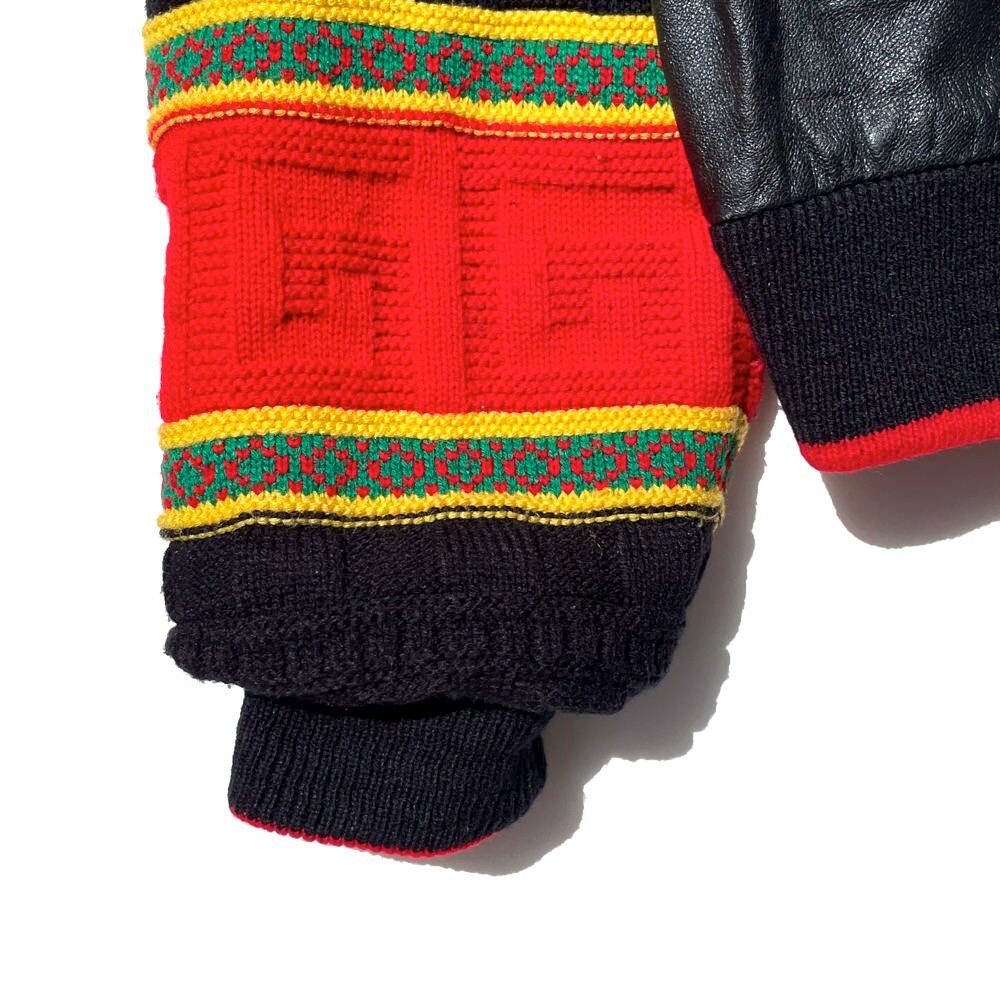 It is a leather and knit jacket made by VILANTO Authentic Leather Wear in the 1980s.
