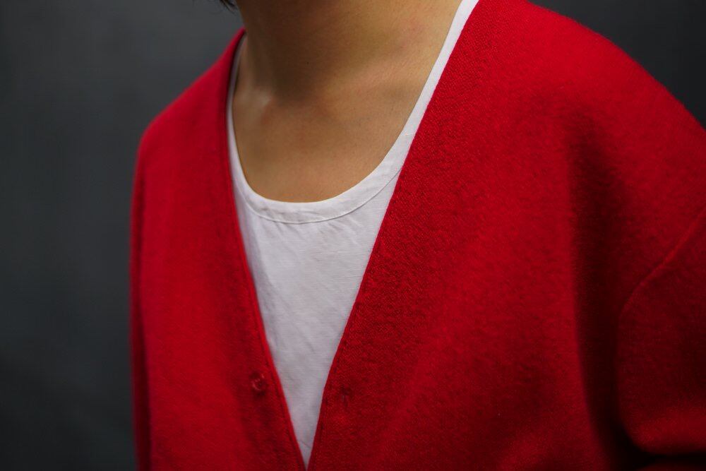 Around the 1970s, this is a wool cardigan with a smooth and light texture.
