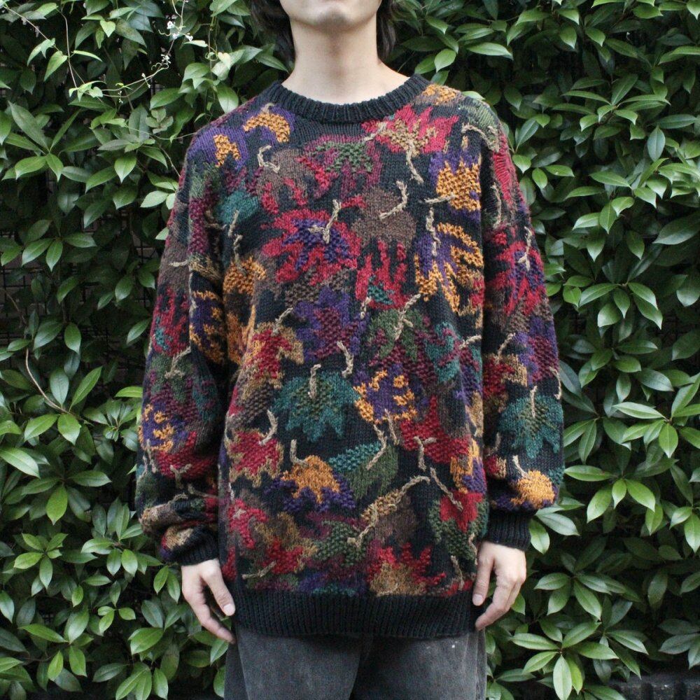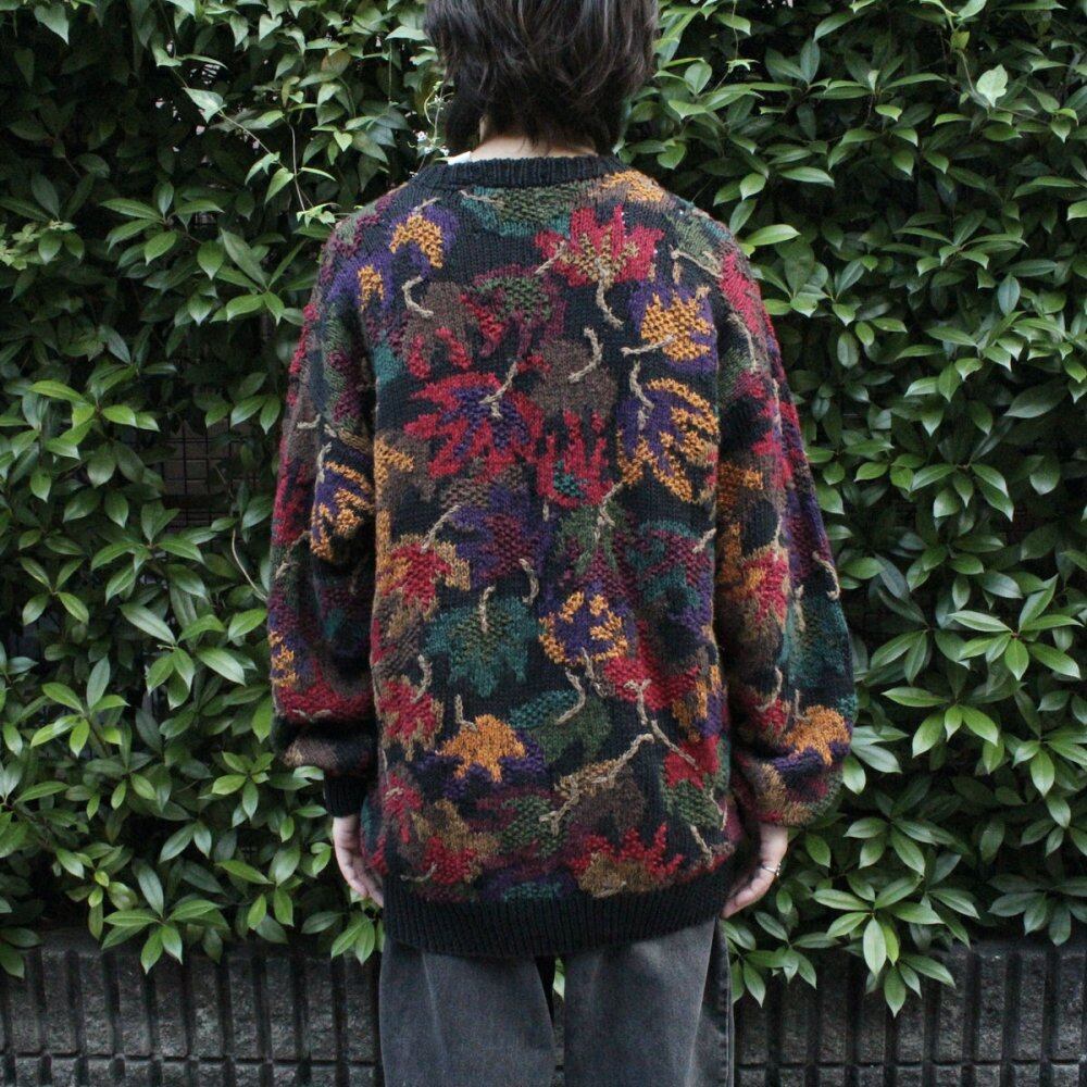 1990s hand knitted crew neck knit. Natural cotton ramie yarn is used for a natural texture, and the hand-knitted sweetness gives it a soft look. It is an eye-catching piece with a black base and a three-dimensional hand-embroidered floral design on the entire surface. XL size and relaxed silhouette. Quality: Ramie 55% Cotton 45% Color: Black Base SIZE: XL [Size] Shoulder Width: 67cm Width: 61cm Sleeve Length: 57cm Length: 76cm [Model Size] Height: 175cm Shoulder Width: 43cm B (Chest): 85cm W ( Waist): 71cm Since it is an old item, it rarely deteriorates over time. Although we try to make the product photos as close to the actual color as possible, the color of the actual product may differ depending on your monitor settings, room lighting, etc. Please check the photos and understand the vintage characteristics before purchasing. ※Please refer to here for the measuring method.