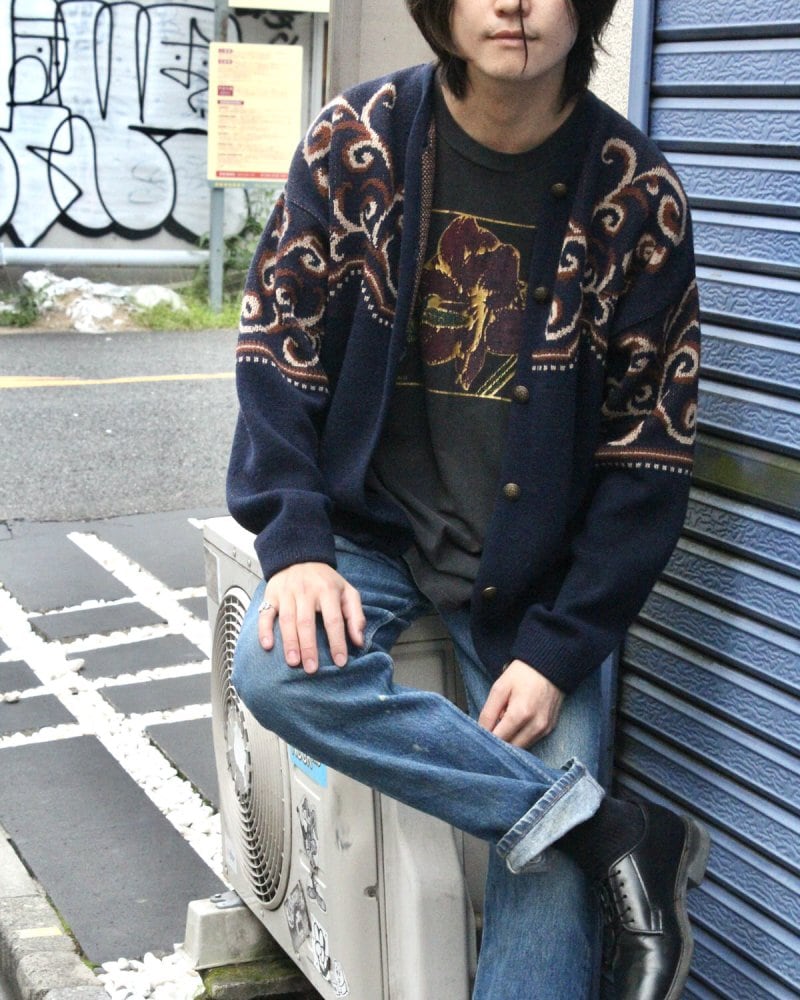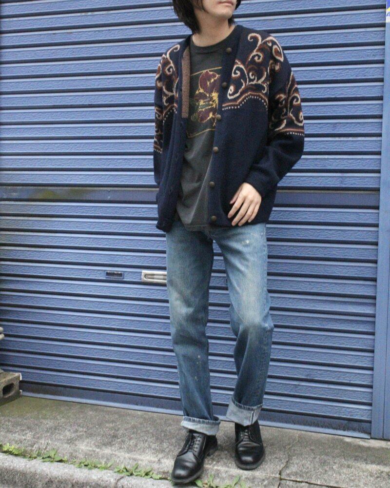A rare knit cardigan from Pendleton in the 1970s. The navy base has an elegant ethnic arabesque pattern, and the design is more classical with a jacket-like design with a tight neck. Although it is XL size, it has a neat silhouette because it is right-aligned. Quality : Virgin Wool Color : Navy SIZE : XL [Size] Shoulder Width: 62cm Width: 62cm Sleeve Length: 55cm Length: 67cm [Model Size] Height: 175cm Shoulder Width: 43cm B (Chest): 85cm W (Waist): 71cm Old There is rarely aged deterioration. Although we try to make the product photos as close to the actual color as possible, the color of the actual product may differ depending on your monitor settings, room lighting, etc. Please check the photos and understand the vintage characteristics before purchasing. ※Please refer to here for the measuring method.