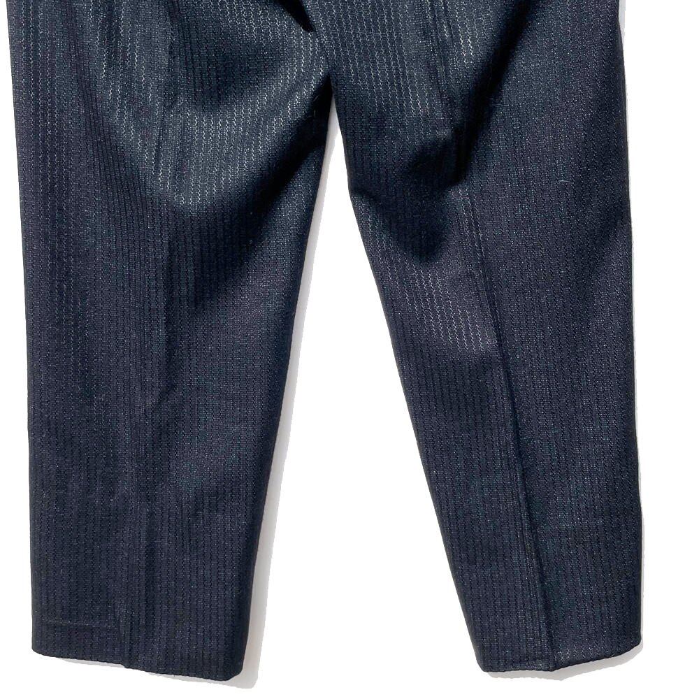 The striped wool body woven with shiny threads is sexy, and the 3 buttons have a narrow V zone and a shallow center vent that are typical of the 1960s. , The pants have a loose waist with a single tuck, and the sleek lines that are loosely tapered toward the hem create a mature silhouette.