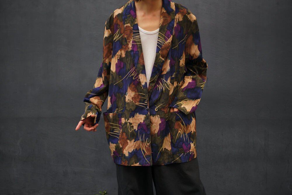 It is an art print light jacket made by KENSINGTON SQUARE in the 1980s.