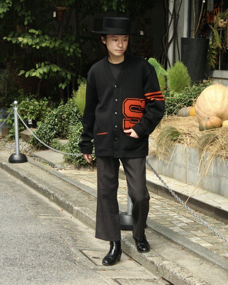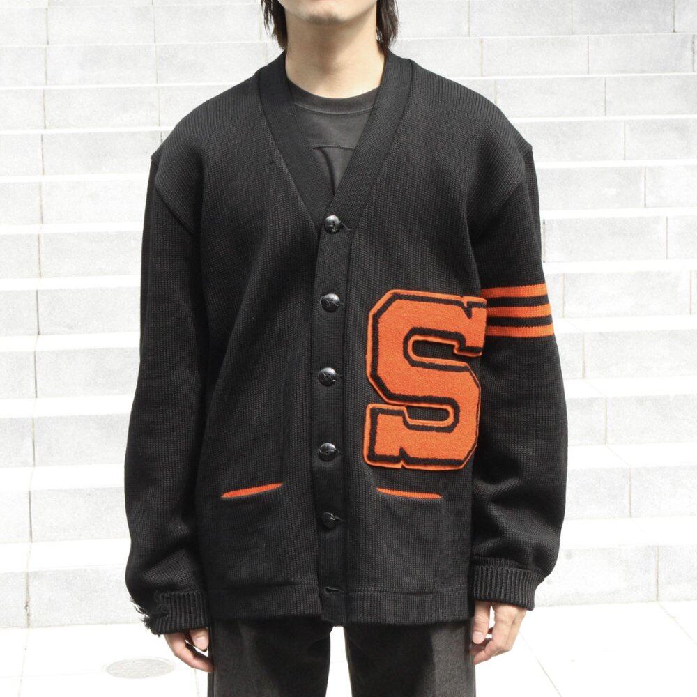 A letter cardigan from the 1950s. In the United States, it is called Varsity / Lettermans, and the practice of wearing a patch (letter) started at Harvard University and is still awarded to players with excellent results and is adopted by strong schools. This is a rare piece from the 1950s. The black color and the patch have a nice atmosphere, and the wolf patch on the back is the point. A beautifully balanced silhouette. The right sleeve rib is damaged, and it is in good condition from a subjective point of view. Since it is an old item, it rarely deteriorates over time. Please check the photos and understand the vintage characteristics before purchasing.