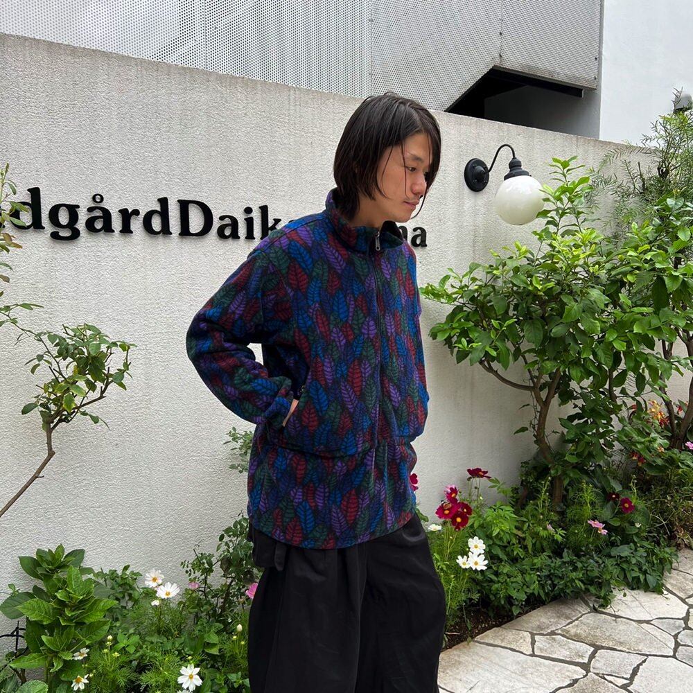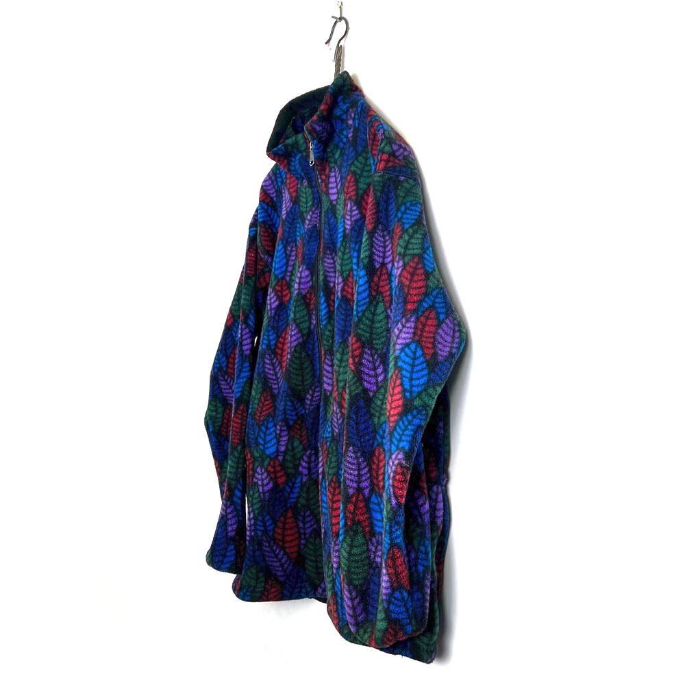 90s Patagonia fleece jacket The leaf pattern in dark colors of blue, purple, and red gives it a nice atmosphere. Made of light 100% polyester fleece fabric, it can be used as an inner jacket in winter. , vintage fleece jacket with good silhouette