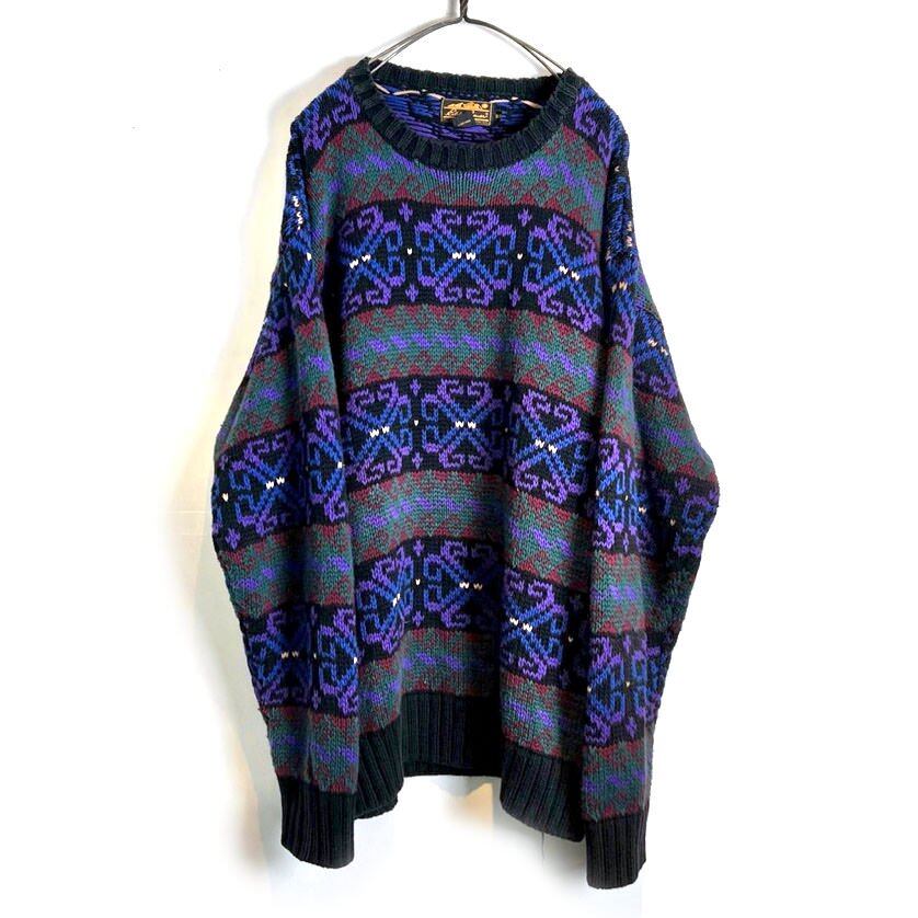 90s Eddie Bauer cotton sweater Black, purple, green and dark blue color patterns create a nice atmosphere