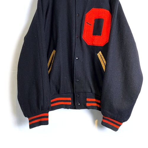 90s award jacket Easy to match black x orange 2-tone color The width of the body has plenty of room, but the raglan sleeves create a beautiful natural shoulder silhouette that fits the person who wears it. also good one