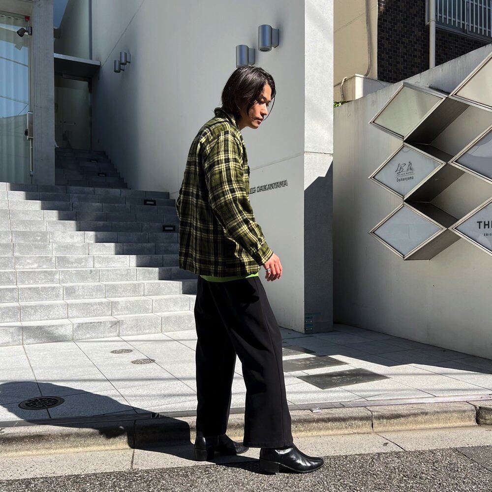 60s wool shirt Olive x black x white masculine astringent check pattern gives it an atmosphere. Both chest flap pockets have a boxy silhouette that gives a sense of the age.