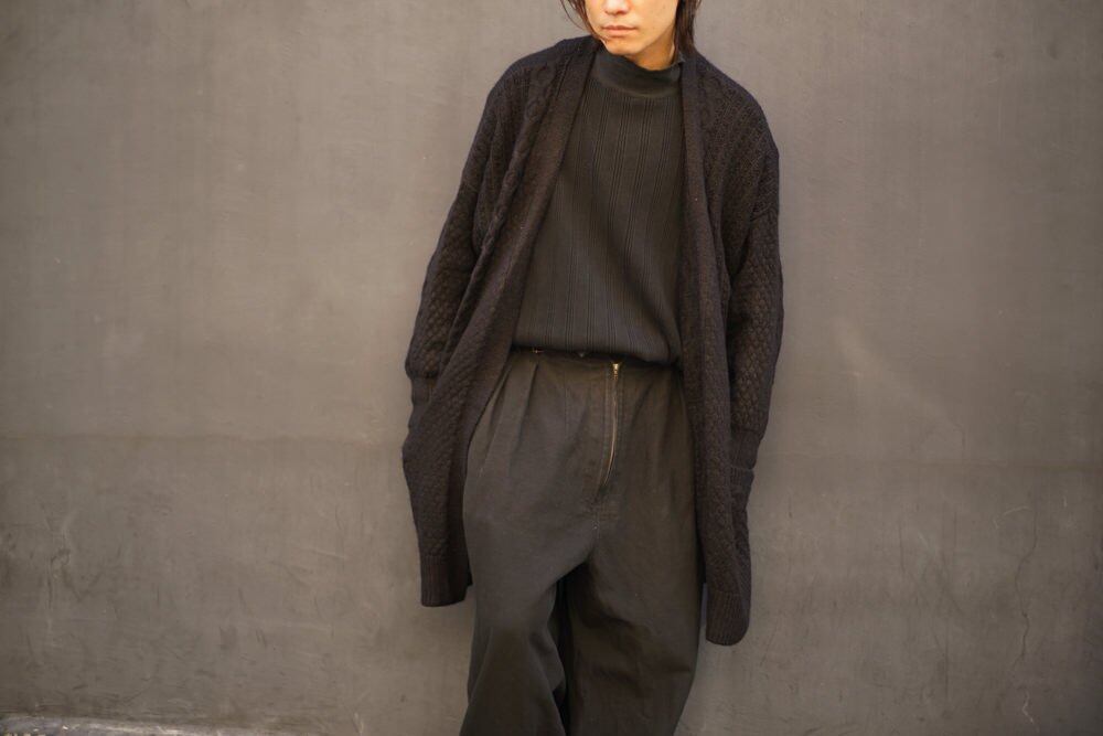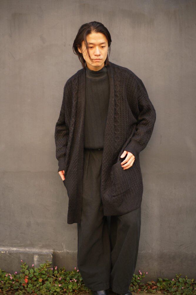 The three-dimensional cable knitting and the solid atmosphere of the deep black body give it a luxurious appearance.