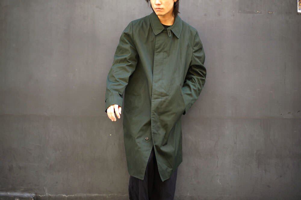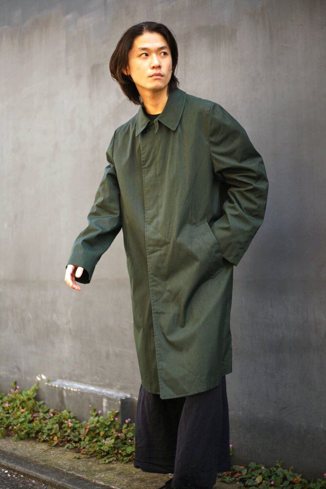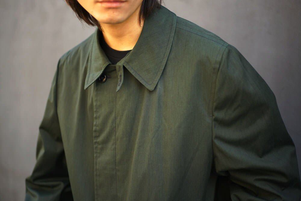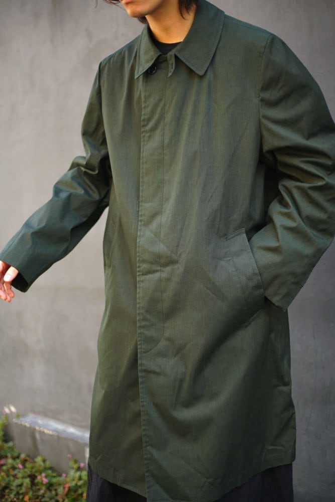 Around the 1970s, this is a vintage stainless steel collar coat made by LONDON FOG. Dark olive-colored chambray-like body with a deep expression that shows black in the back, and an attractive look with a dull luster.