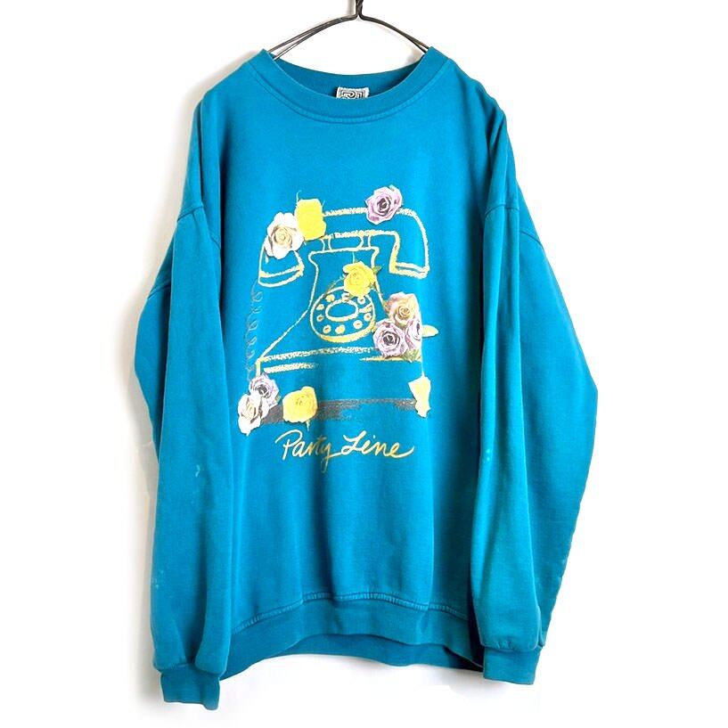 The 80s sweatshirt is a different color version of the lime green sweatshirt we introduced before. The vivid turquoise blue color with mysterious roses and phone print is surreal and cute. Made of 100% cotton material, the sweatshirt fabric feels great on the skin. A vintage sweatshirt that looks great even when worn as a soft inner layer.