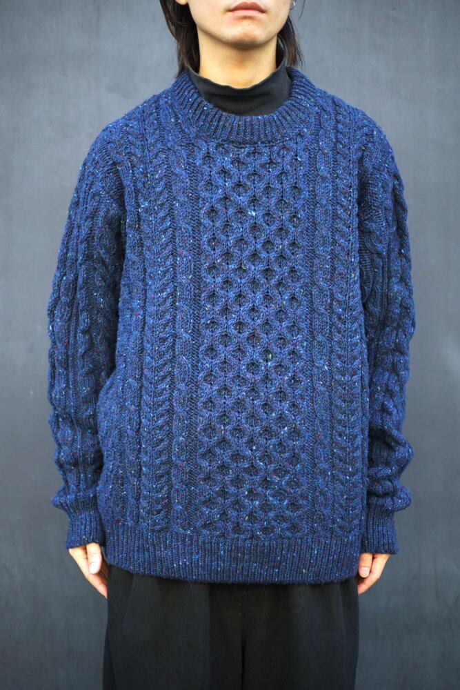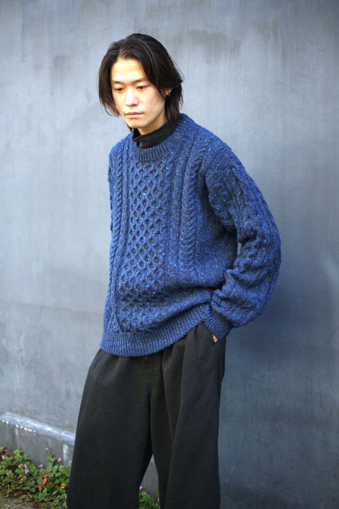 A pop look with color neps scattered in the depths of the deep blue color on a soft and fluffy knit fabric.