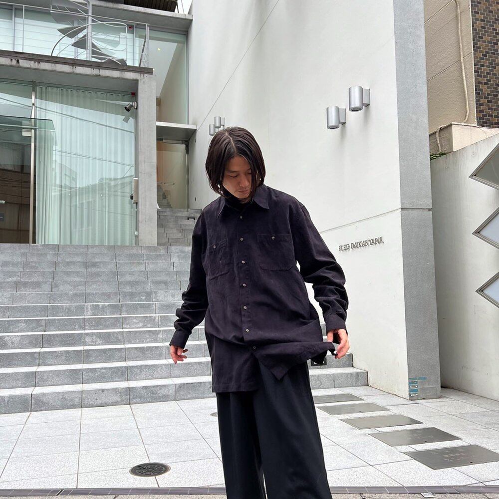 Faux suede shirt from the 90s Its soft and smooth to the touch with a brushed feel like suede. Black color thats easy to match and easy to use.