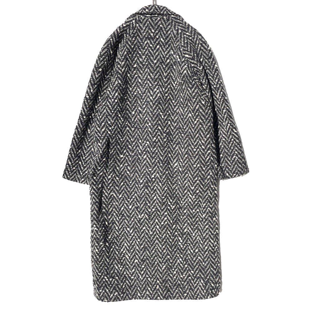 The texture is characterized by the white thread that seems to float on the three-dimensional tweed wool fabric with a black base.
