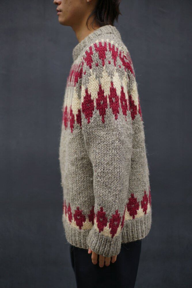 Naturally textured wool with bushy feet is used, and the rough knitted fabric unique to hand knitting and the authentic Nordic pattern give it a gentle look.