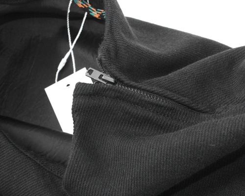 [roundabout] 2022 A/W A jacket featuring a rounded silhouette made into a pullover by removing the collar from the image of a riders jacket with zippers in places. A heavy textured cotton drill fabric is used, and the strong twisted texture and the natural texture unique to cotton give it a mannish and elegant surface. The black color gives it a solid look, and the soft side that is not found in leather riders is also attractive. You can also wear it with trousers of the same fabric.