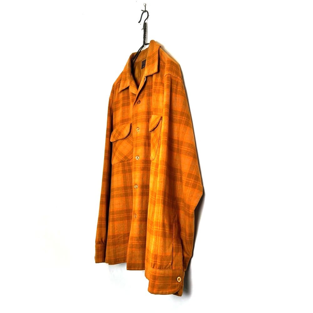 60s Pendleton Wool Shirt Check pattern in orange and brown colors, one of the rare shades among Pendleton check shirts.