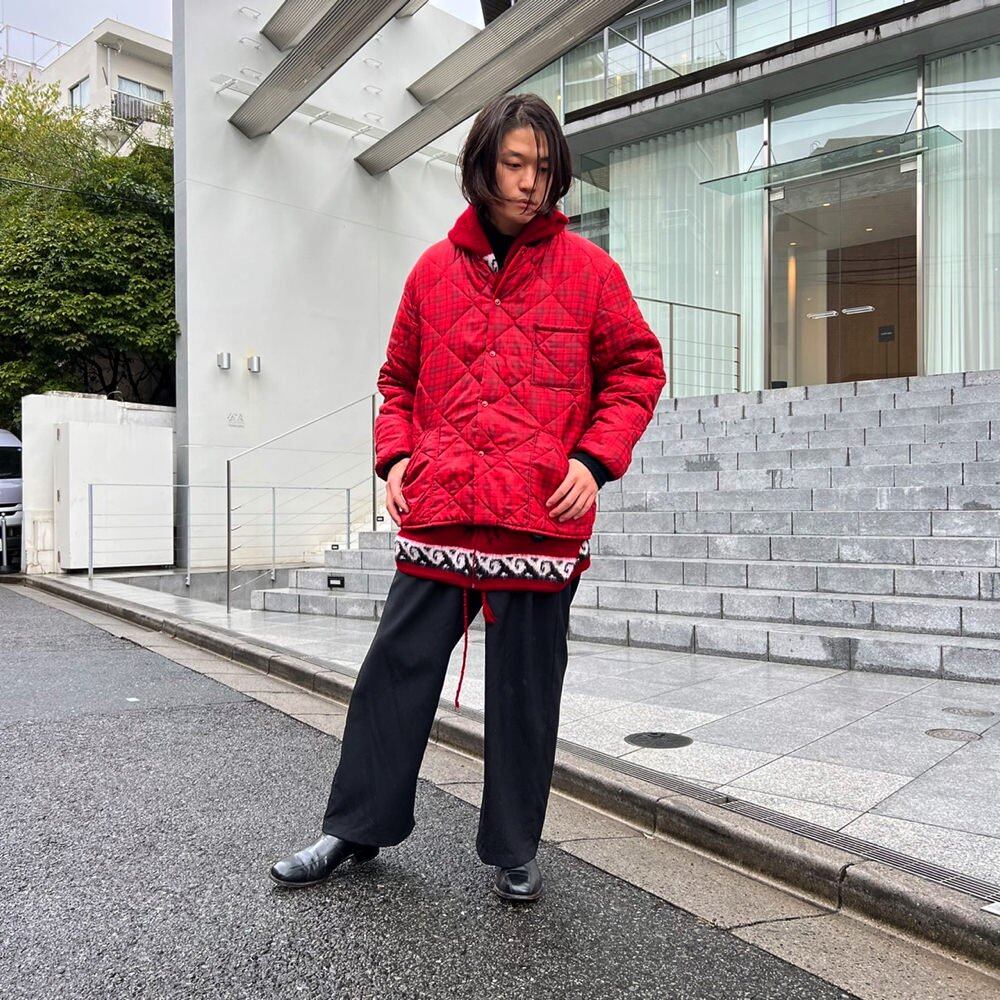 1960s nylon quilted jacket with a cute black plaid pattern on a red background A light nylon quilted jacket with batting that can be used as an inner jacket in the middle of winter.
