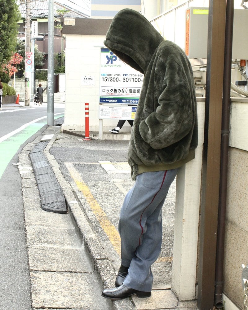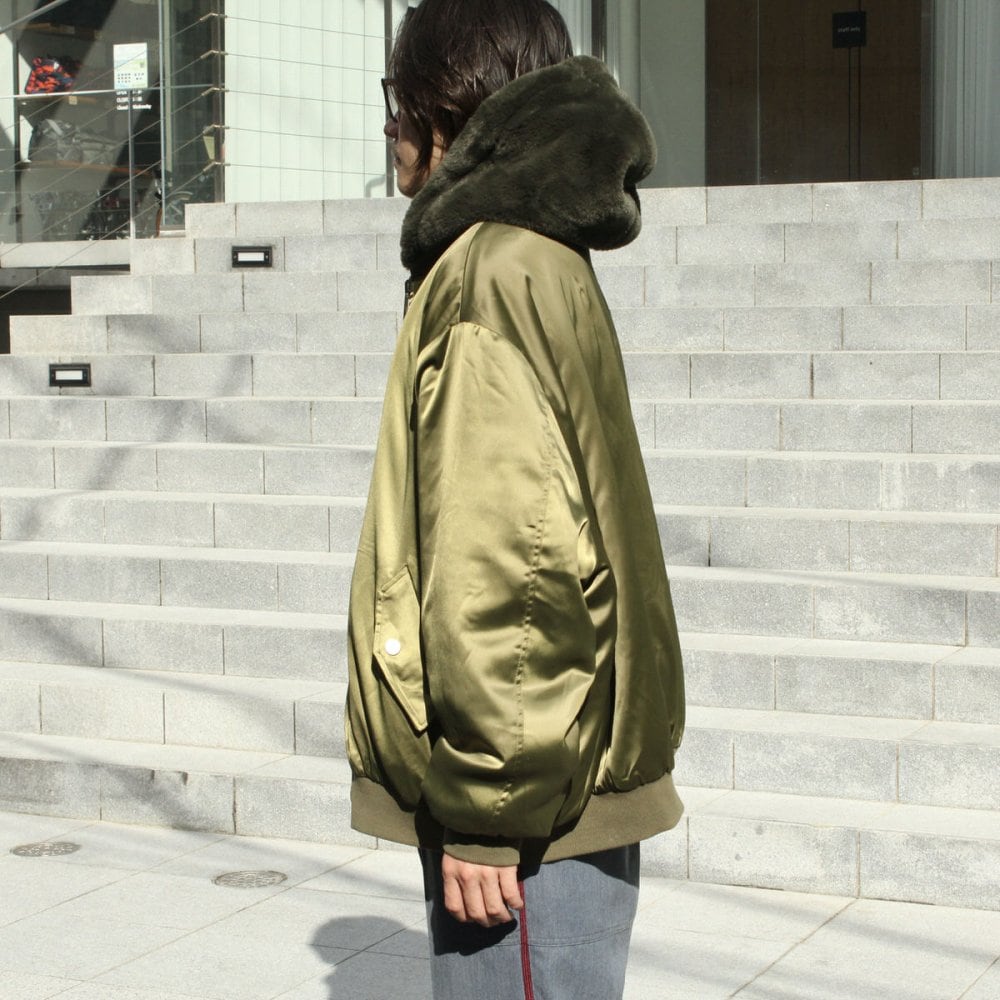 1990s faux fur jacket. The long-haired fur side and nylon (or rayon) side like MA-1 are designed to switch, and the high-volume silhouette and characteristic olive color bring impact and elegance. The nylon surface is dirty, and subjectively, it is in good condition. Since it is an old thing, there is aged deterioration. Please check the photos and acknowledge the vintage characteristics before purchasing.