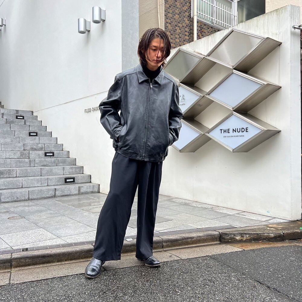 Leather jacket from the 90s. Easy-to-use, easy-to-match single rider-type black leather jacket. Loose and voluminous oversized silhouette is also a modern piece.