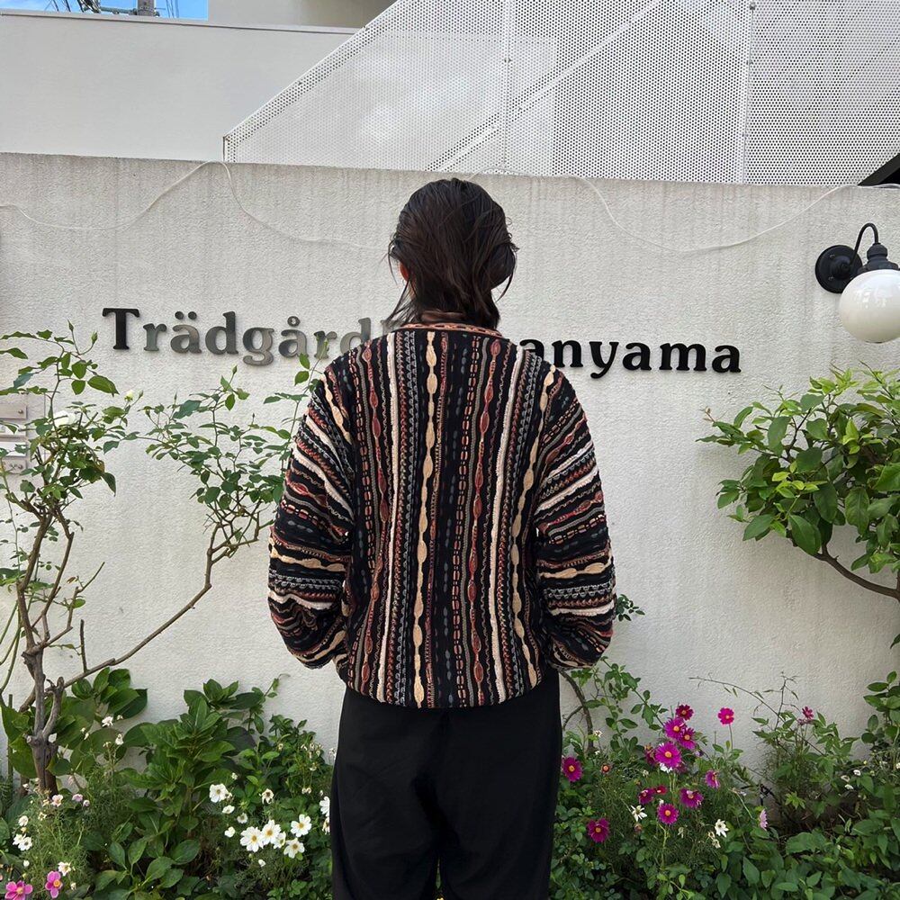 90s cotton sweater Black, red, orange and beige, multi-colored 3D knit is a very nice color.