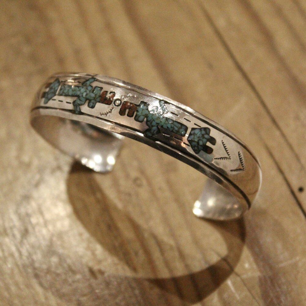 Silver bangle from the 1970s. The Zuni-like inlay design gives it an ethnic look and a vintage look. STERLING stamp. [Size] Width: 11.5mm Inner circumference (end to end): 132mm Since it is an old item, it rarely deteriorates over time. Although we try to make the product photos as close to the actual color as possible, the color of the actual product may differ depending on your monitor settings, room lighting, etc. Please check the photos and understand the vintage characteristics before purchasing. ※Please refer to here for the measuring method.
