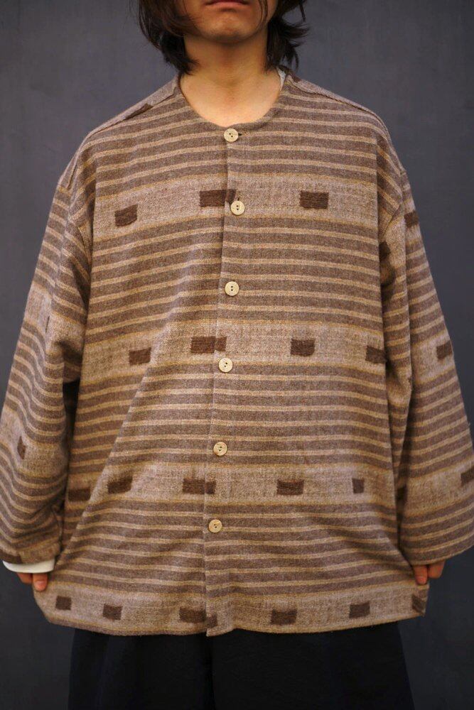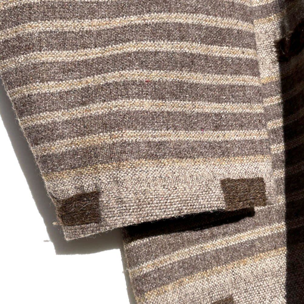 The textured wool and acrylic blend fabric is used to create an ethnic oriental atmosphere with a coarse knit.