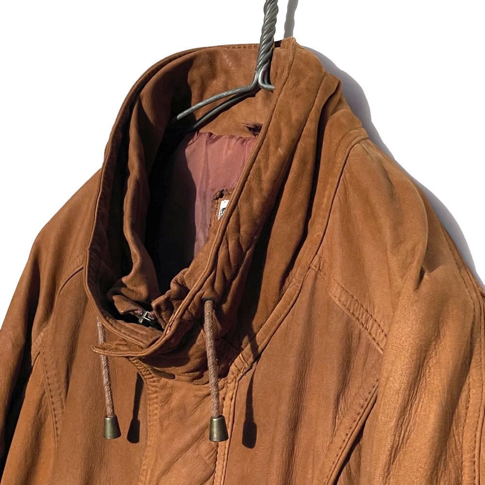 Around the 1990s, this is a nubuck leather jacket made by HB LEATHER.