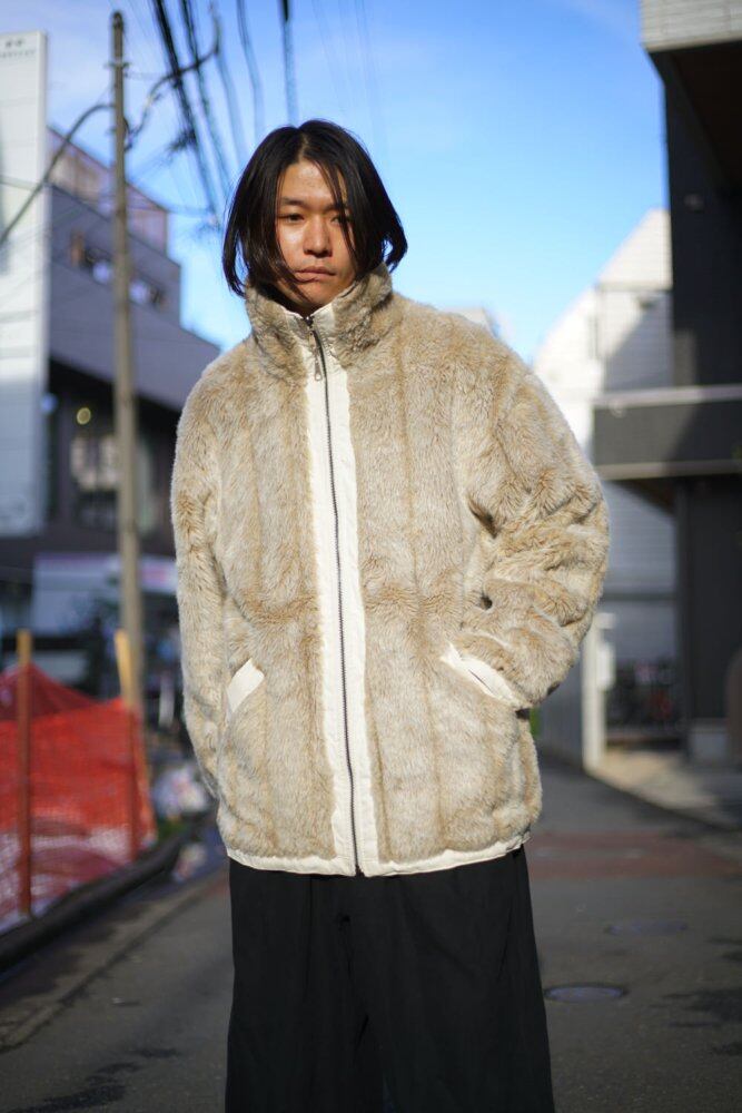 This is a reversible jacket from the 1980s. Soft and comfortable fake fur and soft, thick fake leather are reversible.