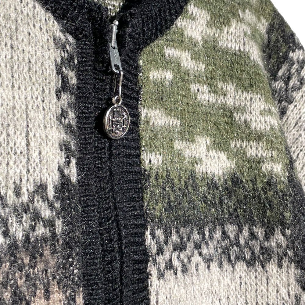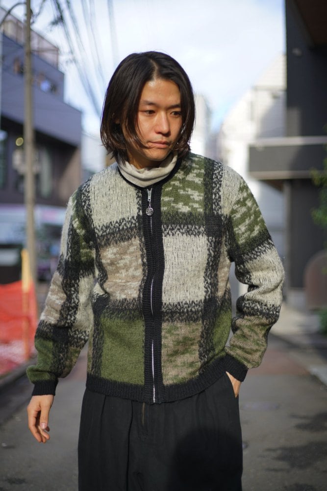 The zip-up sporty design, which is rare in cardigans, and the tight balance of the neck are details that are typical of the 1960s.