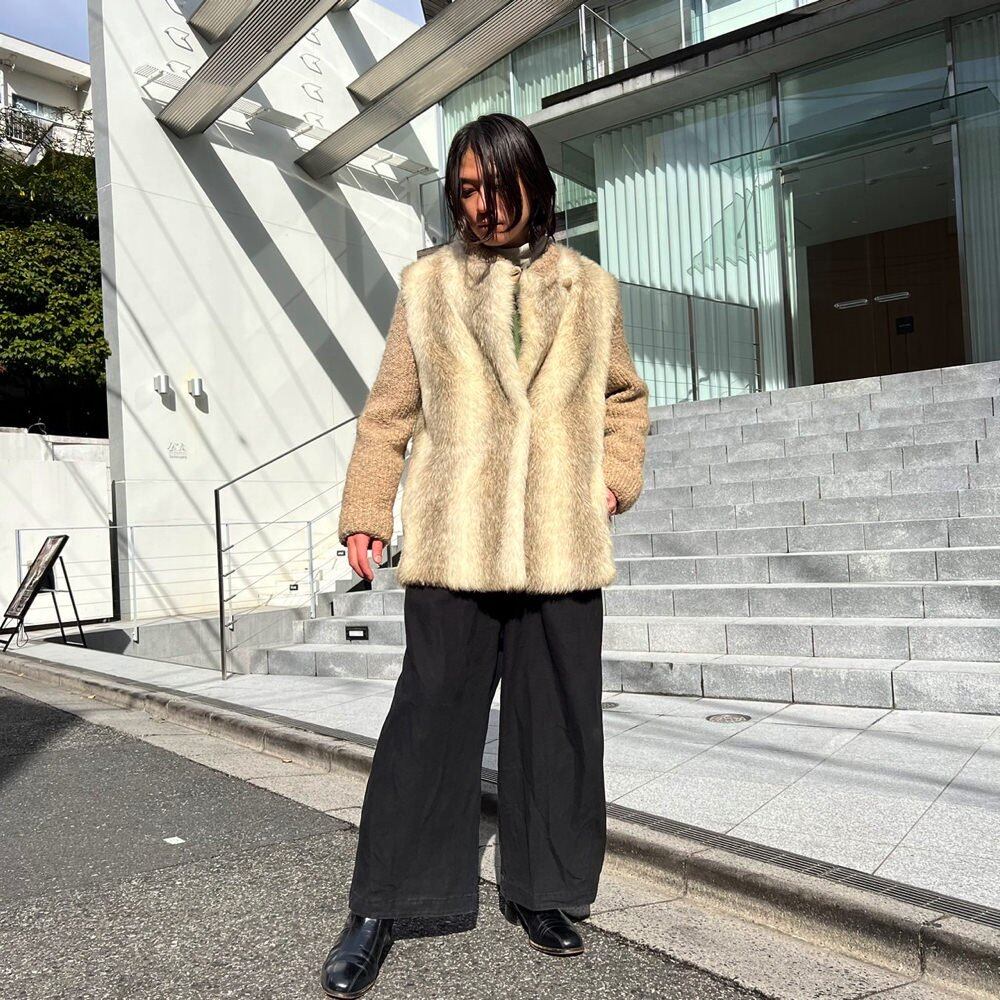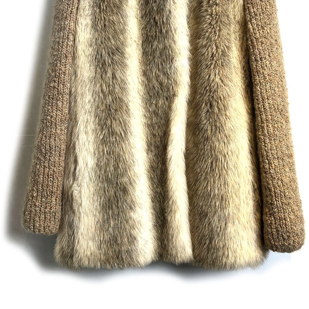 Faux fur & knit jacket from the 70s A combination of long pile beige x off-white striped faux fur and knit material with a soft image. Vintage jacket with good silhouette