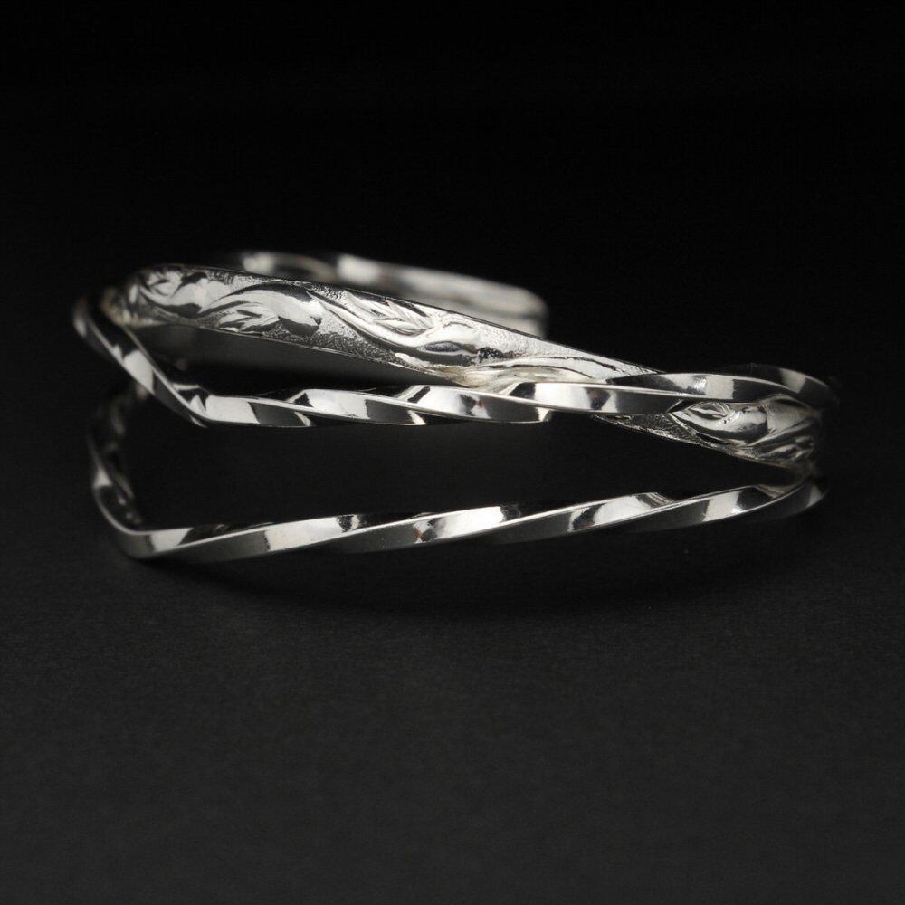 A minimalistic and ethnic design that combines twisted wire silver found in Navajo and plates with arabesque patterns seen in old American jewelry. It is heavy and has a solid appearance. Stamped in sterling silver. Please check the condition in the photo and understand the characteristics of vintage before purchasing.