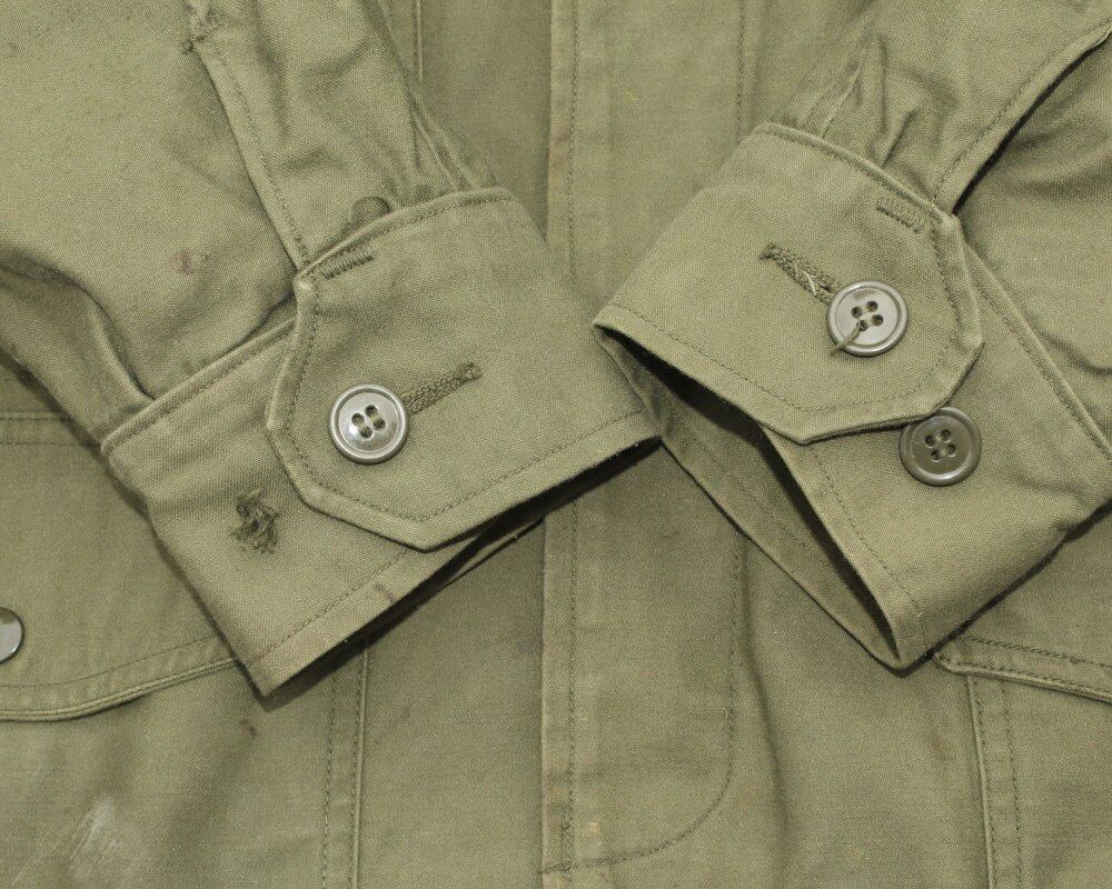 A field jacket of the United States Air Force, also known as a cattle jacket with a built-in hood and a protruding collar that resembles cows ears. It was manufactured only from the 1950s to around this age, and since the M-65 jacket was supplied to each unit later, it is an item with a small number of balls even in the vintage market. The silhouette is M-65, but it has raglan sleeves and the silhouette is more rounded. The patch pockets are also neatly constructed to give an overall impression. The right sleeve button is missing, and there are other signs of aging, but I think it has a nice vintage atmosphere. Since it is an old item, it rarely deteriorates over time. Please check the photos and understand the characteristics of vintage before purchasing.