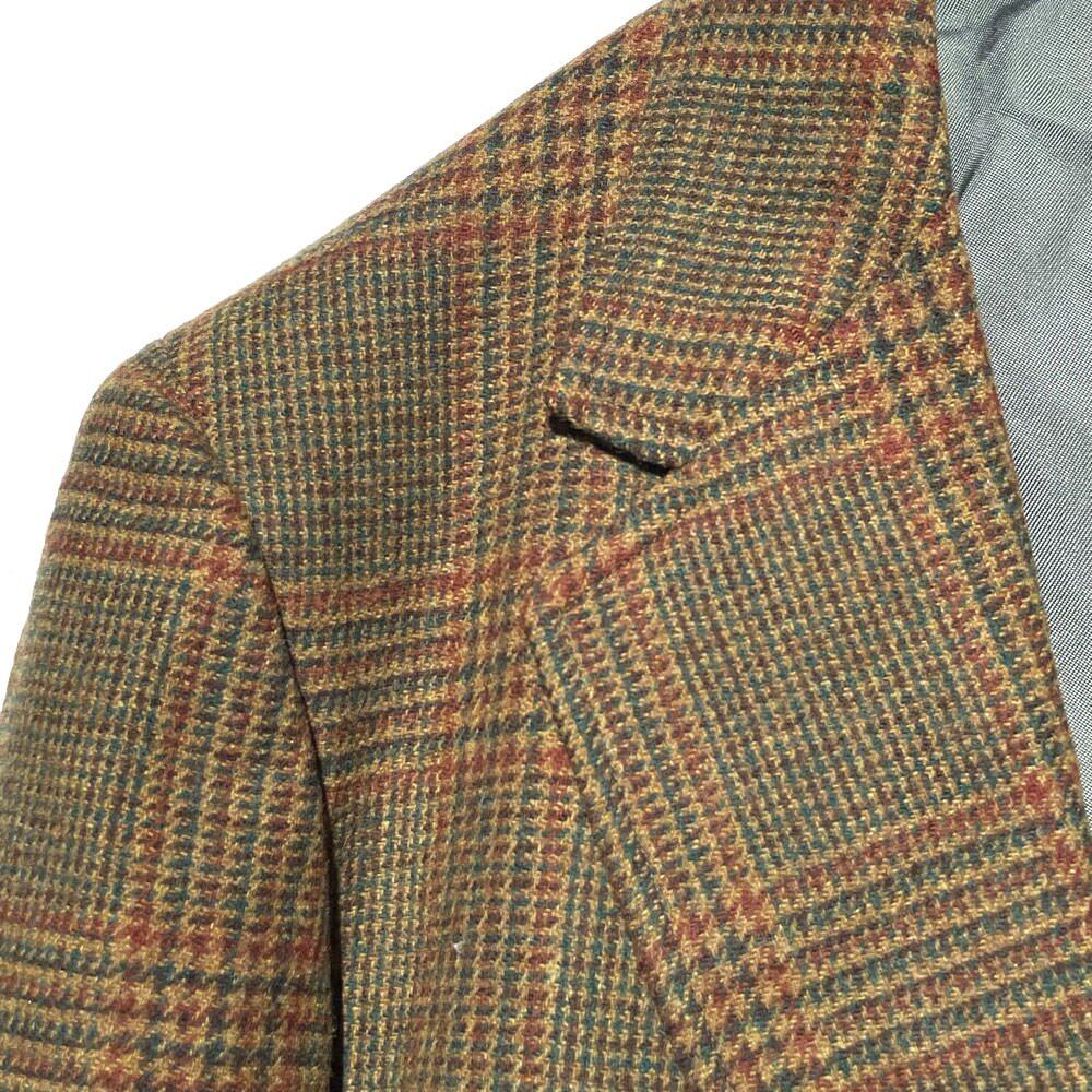 The small lapel design and textured glen check wool tweed fabric gives an elegant impression with a traditional feel.