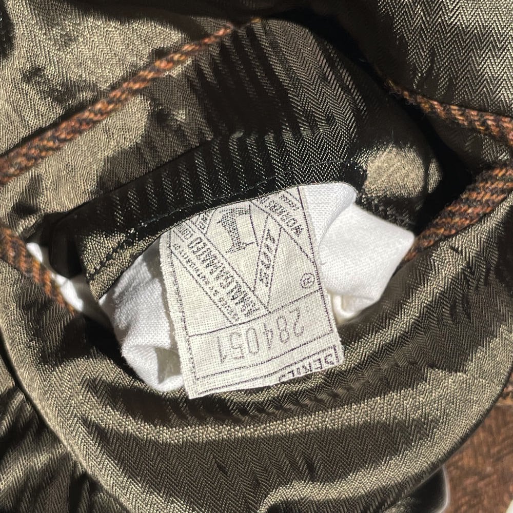 The 60s-like narrow V zone gives a vintage feel, and the warm coloring and soft texture make it comfortable to wear.<BR> While the shoulder pads have been removed to retain the mannish look of the original box silhouette, the softness of the fabric creates a soft line that follows the body, creating a relaxed silhouette.