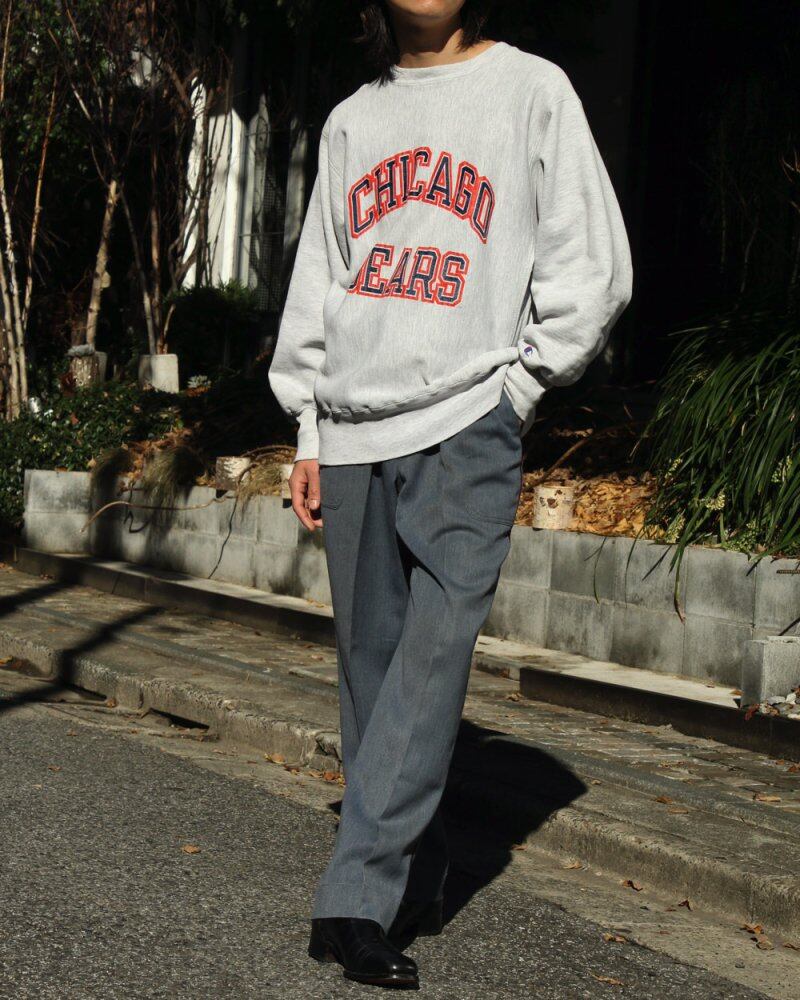Around 1990s Toriko Tag, champions reverse weave. Varsity print of the NFL team Chicago Bears. The team colors of dark navy and orange color shine on the gray body. Large size with moderately relaxed silhouette. There is some damage to the sleeve ends, and it is in good condition from a second-hand perspective. Since it is an old item, it rarely deteriorates over time. Please check the photos and understand the vintage characteristics before purchasing.